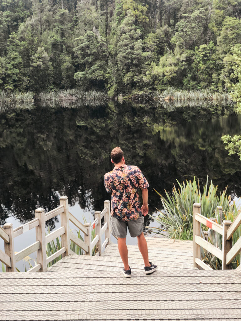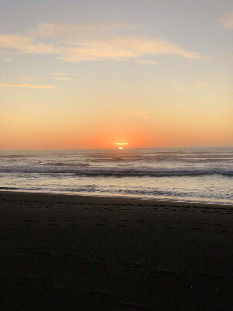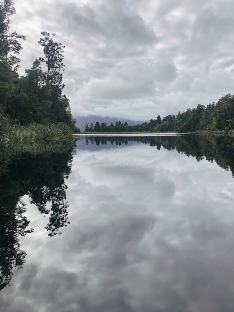 Ich habe dann auch wirklich einen Goldschatz gefunden, an der Westküste der Südinsel Neuseelands, die auch bekannt ist dafür. Natürlich nur, weil ich aufgehört habe danach zu suchen. Und Zack, Sonnenschein und Jeremy an einem Tag. Morgen früh sind wir um 5.45 zum Sonnenaufgang auf seinem Autodach verabredet, die Kulisse ist der Fox Gletscher und die dahinter auftauchende Sonne. So zumindest die Vorstellung. Es könnte nämlich regnen. (Tatsächlich haben die Wolken die Sicht verdeckt und wir sind wieder jeweils in unsere Camper vor den Sandfliegen geflüchtet).