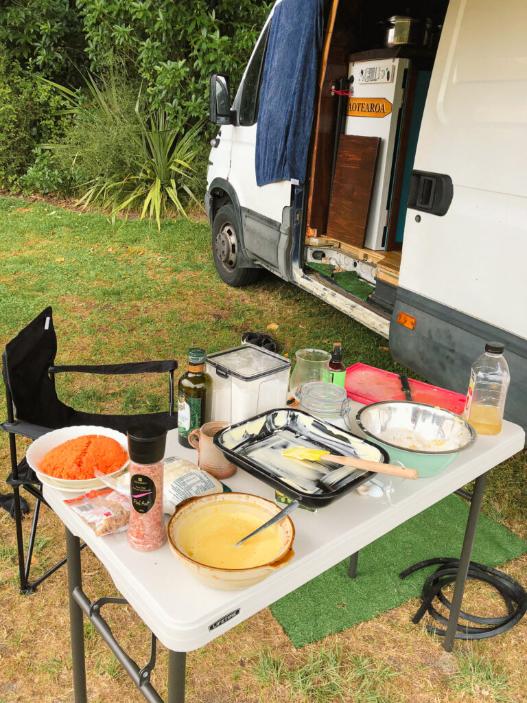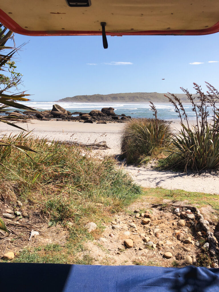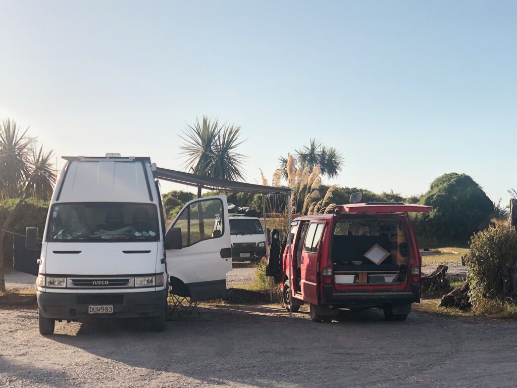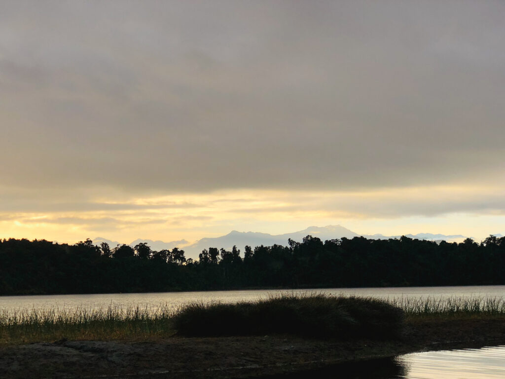 Die letzten Tage waren teilweise wieder sehr verregnet und irgendwie ist mit Begleitung das Leid nur das halbe, da ja geteilt. Rechnen kann ich. Auch über die Sandflies lässt es sich zu zweit einfach besser klagen. Aber was will man erwarten von einem Ort, der für 200 Regentage im Jahr bekannt ist, also es regnet hier einfach jeden zweiten Tag, das hat nichts mit Pech zu tun. Soweit habe ich die vollen Vorzüge von Jeremys Van ausgenutzt. Kennengelernt haben wir uns, weil er mich zu sich zum duschen eingeladen hat (Ich habe mühevoll versucht den Solarduschbeutel mit einem Rinnsal Wasser zu füllen) und dann haben wir Apple-Rhababer-Crumble und Karottenkuchen gebacken und ich habe jeden Morgen Joghurt, der noch nicht vergoren ist, weil ich seinen Kühlschrank benutzen kann. Soweit bis heute seit Westport alles sehr sehr gut. Und ab morgen dann wieder alleine und ohne diese wundervollen Vorzüge, aber dennoch mit den Bergen im Hintergurnd und oft auch der untergehenden Sonne.
