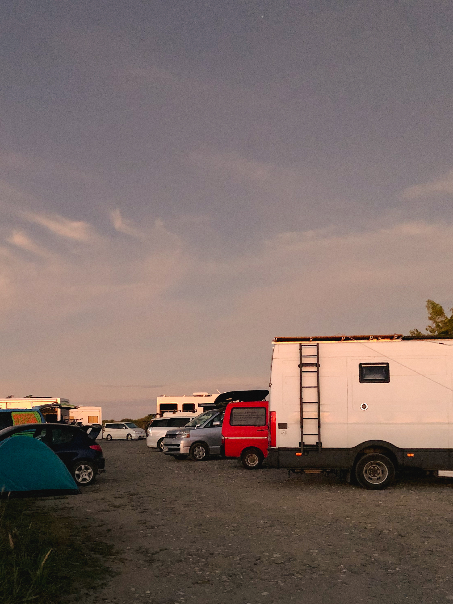 Die letzten Tage waren teilweise wieder sehr verregnet und irgendwie ist mit Begleitung das Leid nur das halbe, da ja geteilt. Rechnen kann ich. Auch über die Sandflies lässt es sich zu zweit einfach besser klagen. Aber was will man erwarten von einem Ort, der für 200 Regentage im Jahr bekannt ist, also es regnet hier einfach jeden zweiten Tag, das hat nichts mit Pech zu tun. Soweit habe ich die vollen Vorzüge von Jeremys Van ausgenutzt. Kennengelernt haben wir uns, weil er mich zu sich zum duschen eingeladen hat (Ich habe mühevoll versucht den Solarduschbeutel mit einem Rinnsal Wasser zu füllen) und dann haben wir Apple-Rhababer-Crumble und Karottenkuchen gebacken und ich habe jeden Morgen Joghurt, der noch nicht vergoren ist, weil ich seinen Kühlschrank benutzen kann. Soweit bis heute seit Westport alles sehr sehr gut. Und ab morgen dann wieder alleine und ohne diese wundervollen Vorzüge, aber dennoch mit den Bergen im Hintergurnd und oft auch der untergehenden Sonne.