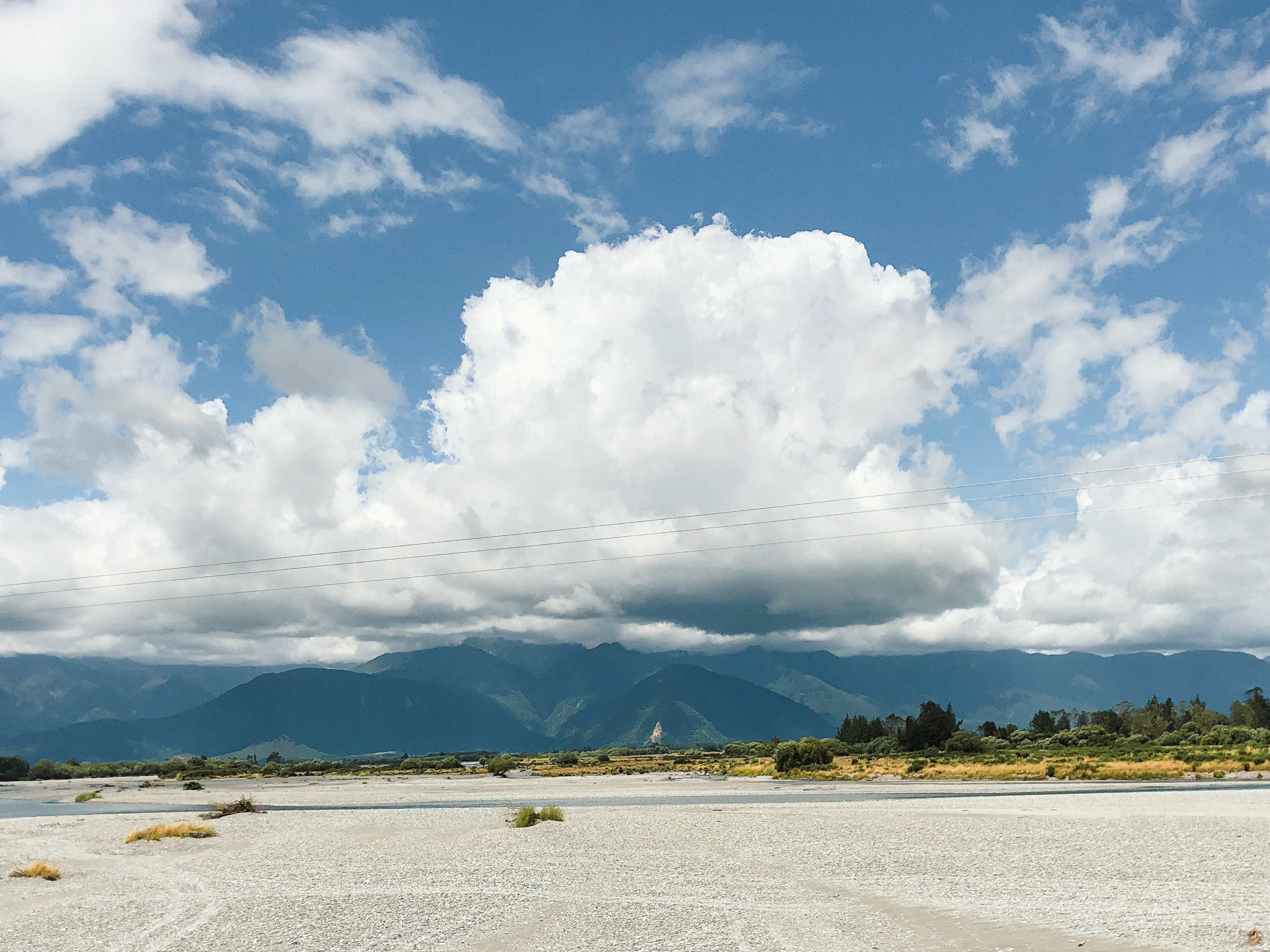Ich habe auf jeden Fall das Gefühl, dass ich da angekommen bin, wo ich hingehöre. Die Sandfliegen und ich. Der Schwarm greift an, sobald ich mal länger als 3 Minuten an einem Ort verweile. Die Strecke von Blenheim Richtung Westport führt durch ein weites Tal, rechts und links Hügel. Schroffere Hügel, karger, fast schon Berge. Vielleicht sind es Berge. Und im Osten reihenweise Weinreben, kilometerlang.  Hier am Lake Rotora sind es definitiv nur noch Berge. Das Gras ist hier nicht mehr so grasgrün, eher strohgelb bis heugrün und die Wälder wie bei Sagaland. Akkorat gepflanzte Nadelbäume, aber auch „echter“ Wald, so wie hier direkt am See. Über meinem Kopf summt es, eine Wespenplage. Und in anderen Wäldern, Palmen und ein ohrenbetäubendes Grillengezirpe.