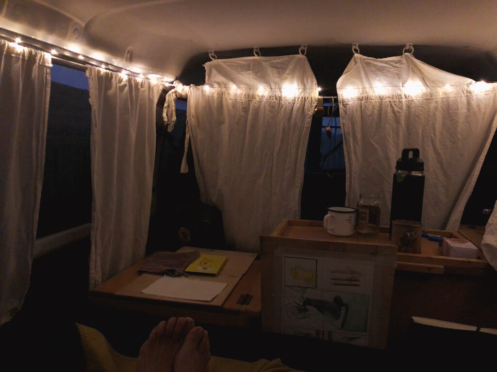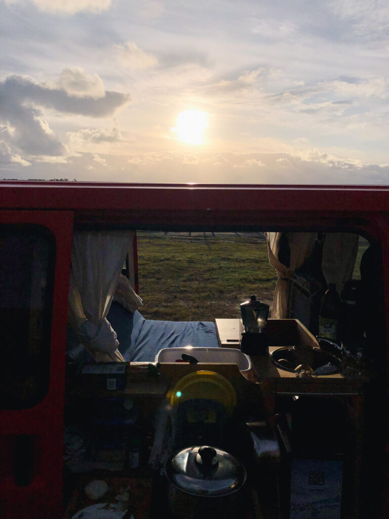 Und ich stimme ihr da voll und ganz zu. Denn eigentlich ist Camping auch wunderschön. Vor allem mit einem ausgebauten Van. Mit der richtigen Matratze geht das bestimmt auch noch besser, aber ich will mich nicht beschweren, ich bin froh, dass Ben und Robyn mir das alles hier ermöglichen und die ganze Ausbauarbeit geleistet haben.