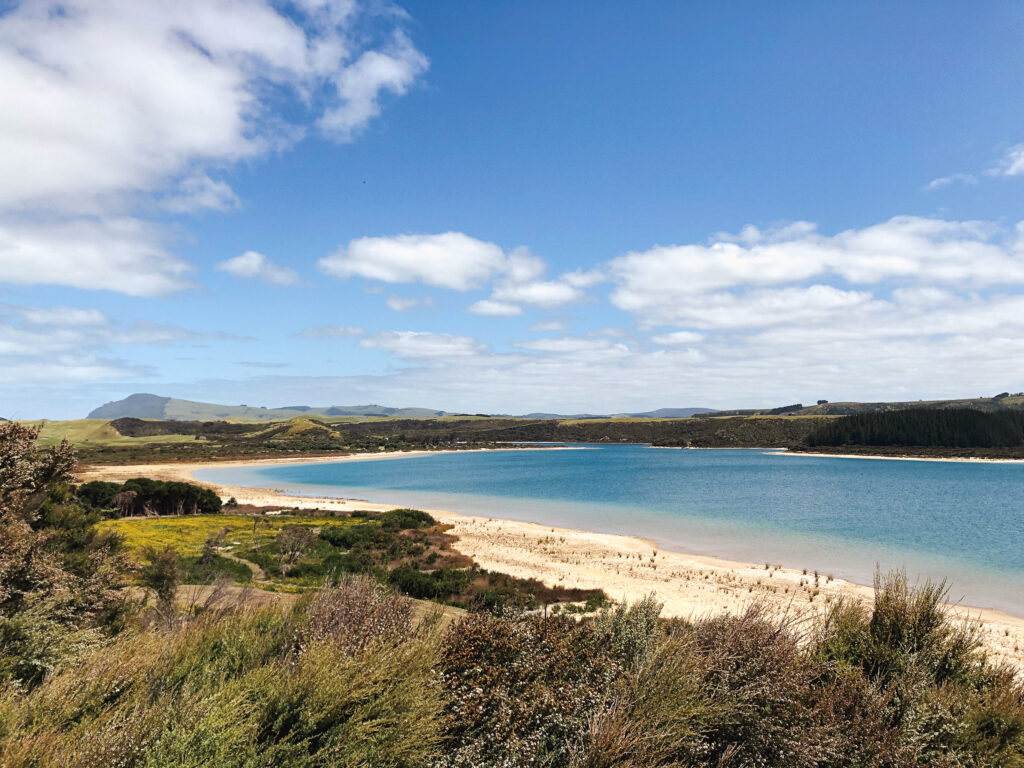 Gelandet bin ich nun am Ninety-Mile Beach. Hier kann man mit seinem 4-Wheel-Drive-Car oder mit dem Moped bei Ebbe vollkommen sinnfrei und laut den Strand hoch und runter pesen um Eindruck zu schinden. Oder so. Wahrscheinlich macht es unglaublich Spaß, aber ich bekomme eben nur das Motorengeräusch mit. Abgesehen davon hab ich einen super Platz, mit dem Meer direkt vor meiner Nase. Wenn ich Surfer.in wär, würde mich die Meerespracht bestimmt umhauen. Da ich aber nicht so sehr das Beachgirl bin, schaue ich einfach nur staunend aufs wunderschön blaue Meer. Die Hängematte ist installiert und Kaffee und Kuchen, wie es sich für einen Sonntag gehört habe ich schon seriös zelebriert.