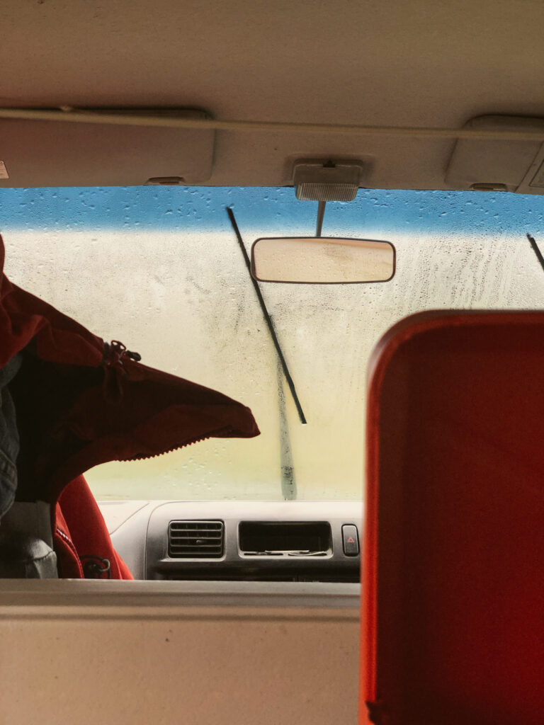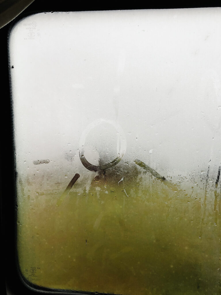 Manchmal fühle ich mich wie eine richtige Architektin, wenn ich den Karren so oft umparke, bis er im richtigen Winkel zur aufgehenden Sonne, abgewandt zur Straßenbeleuchtung, niemals unter einem Baum, wenn es regnet (da das Autoblech nicht antidröhnbeschichtet ist) und mit unverbaubarem Blick steht. Manchmal hab ich auch keine Wahl, da entscheiden die (da oben) wo ich mich hinzustellen habe. Und manchmal ist es absolut egal, weil die Scheiben nach Dauerregen so beschlagen sind, dass ich nichts von der Umgebung sehe.