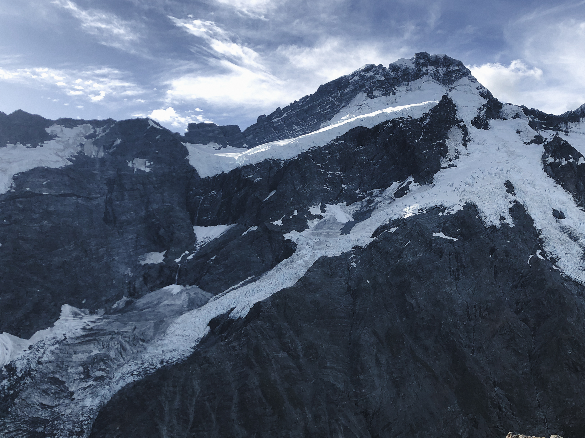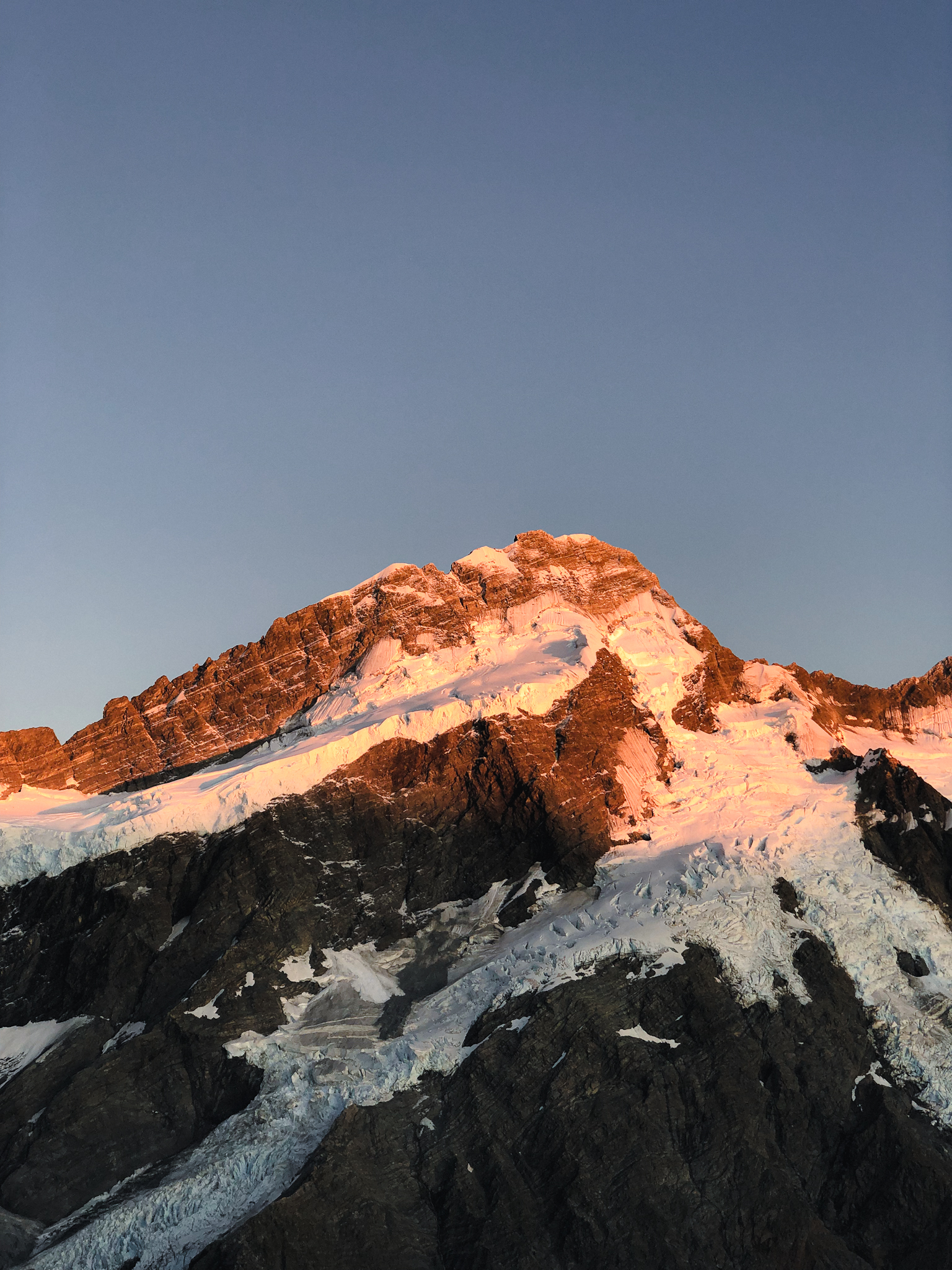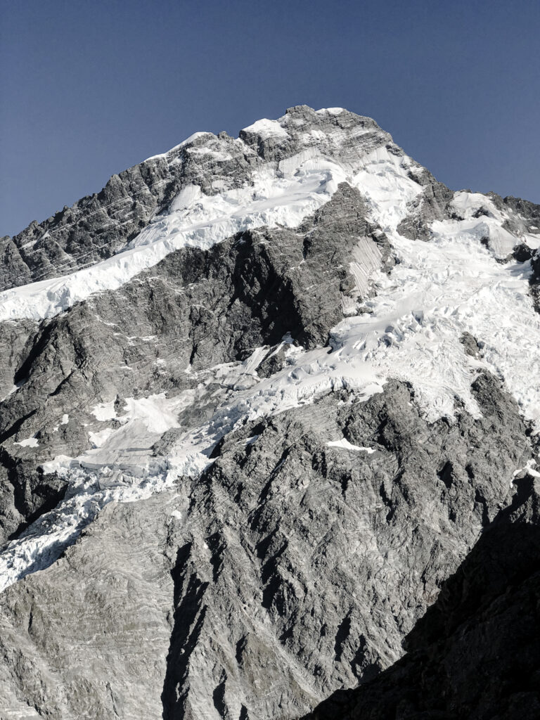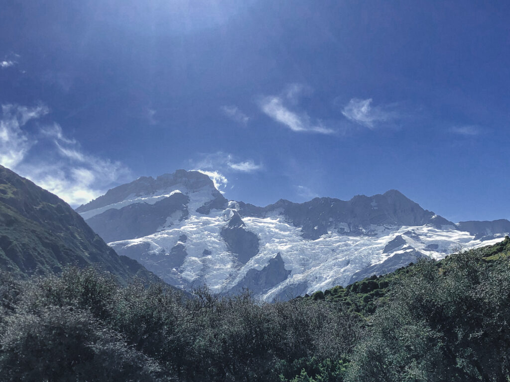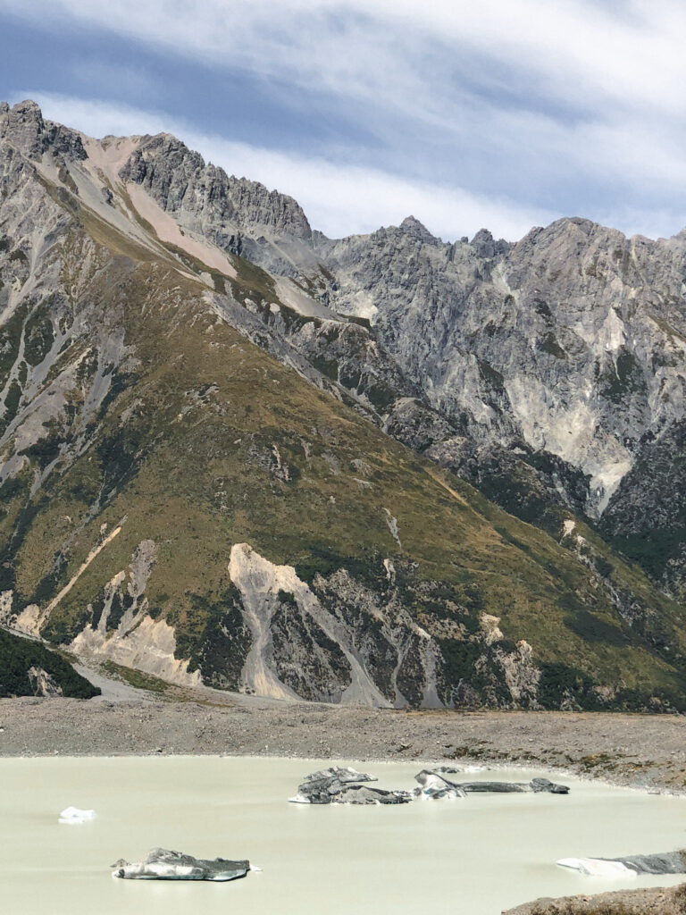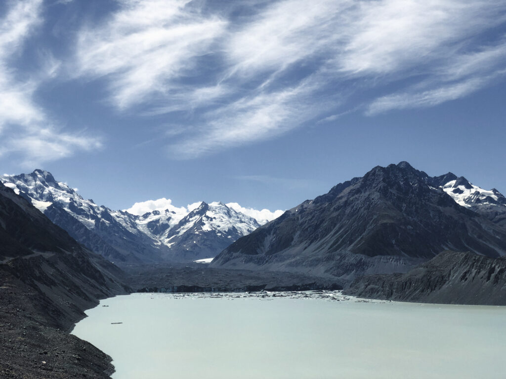 Mit einem fremden Anhalter. Jetzt wo ich das so schreibe kommt es mir noch absurder vor. Aber gut, aus Fehlern lernt man. Und ich möchte die Erfahrung trotz allem nicht missen, die Sicht auf den Mount Cook war jedenfalls wirklich schön. Und die Gletscher machen ziemlich laute Geräusche. Felsen und Eislawinen stürzen ab und es hört sich stark nach Donner an.