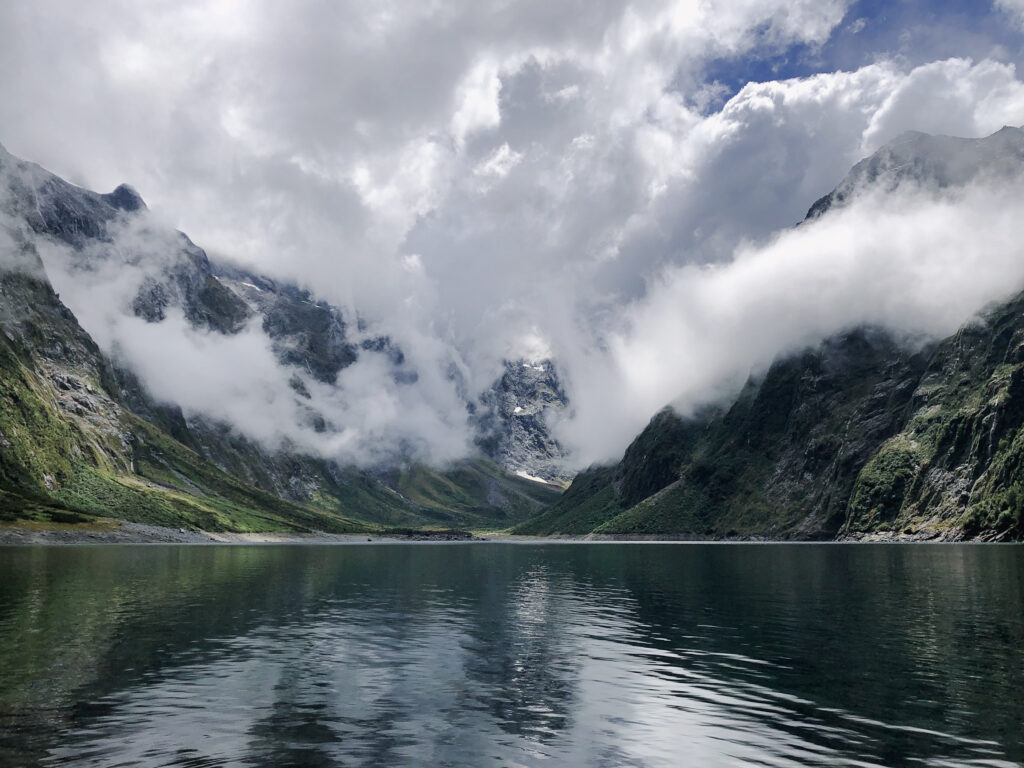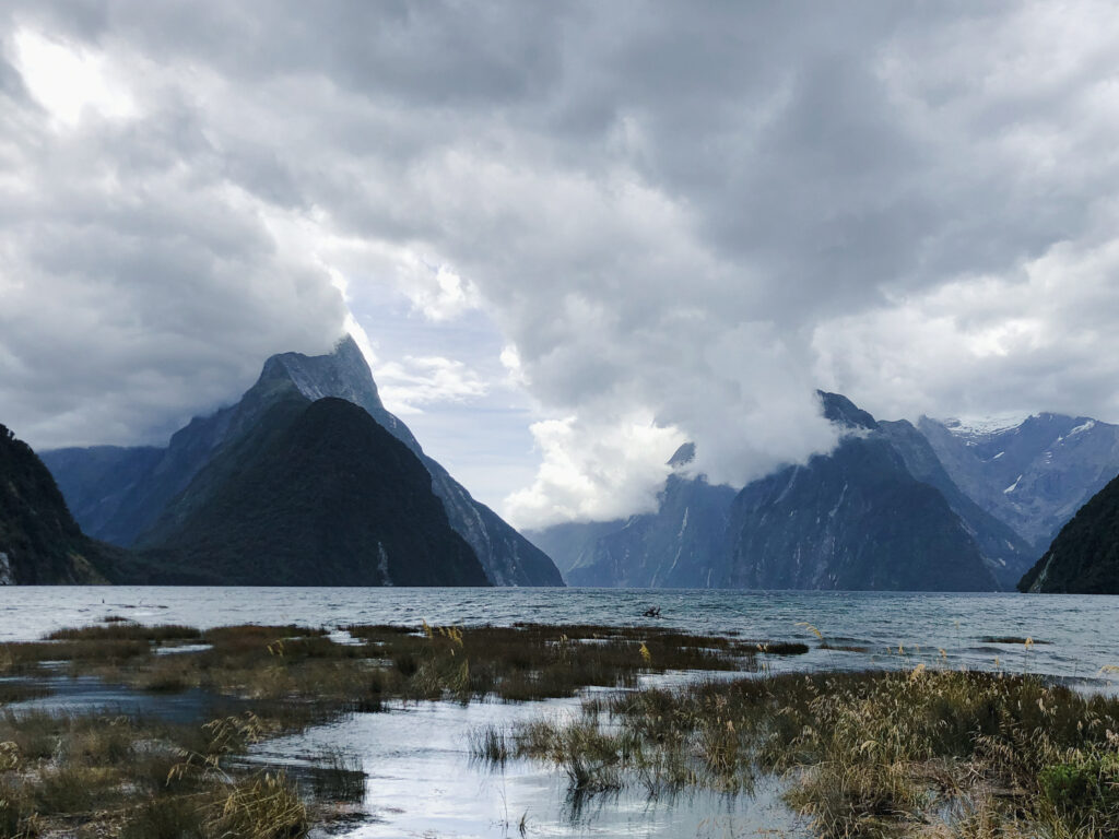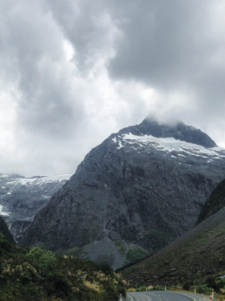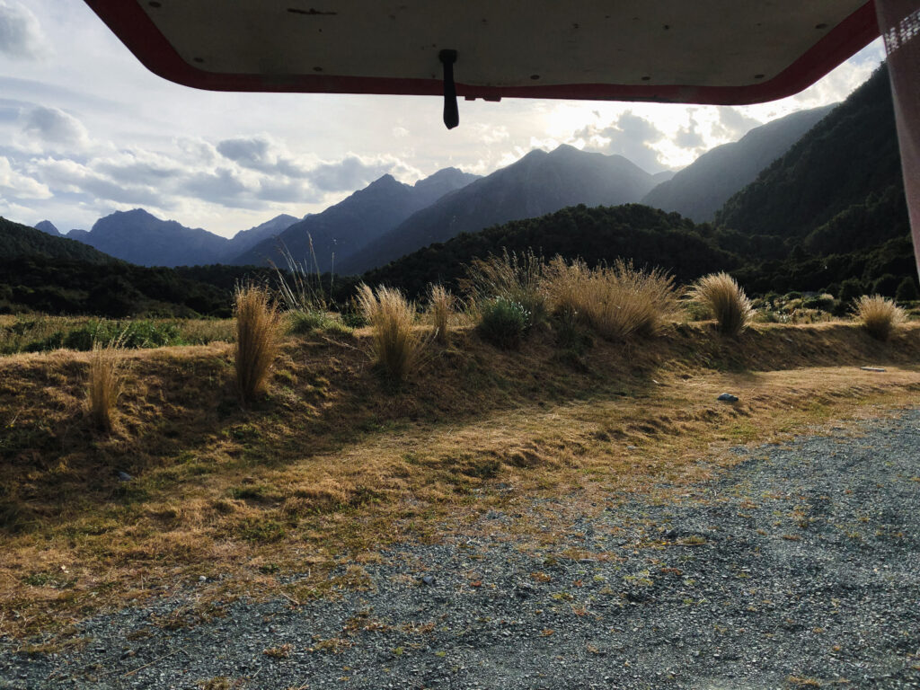 Ich kann sagen „schon schön hier.“, Gletscher, Felsen, ein bisschen Grün und das Meer. Außerdem Touristenbusse und im 10 Minuten-Takt Flieger oder Hubschrauber, die die asiatische Busbesatzung durch die Lüfte tragen, oder Schiffe, die die Wandersleute zum Milford-Great-Walk bringen. Dort gelangt man nämlich nur per Schiff hin. Da mir die Überfahrt und die Übernachtungen auf den Hütten zu teuer sind, begnüge ich mich mit den verbleibenden Möglichkeiten, die durchaus auch beeindruckend sind. Leider prasselt momentan wieder der Regen auf das Autodach. Aber voraussichtlich nur heute, am Frenchtoast-Friday, dem zweiten Tag in Folge, an dem ich die Füße stillhalten muss. Und auch nur, um dann morgen wieder mit voller Kraft die angrenzende Region an mein gewünschtes Herrschaftsgebiet („Frauschaftsgebiet“ macht ja gar keinen Sinn, „Damenschaft“ auch nicht. ) zu erkunden.