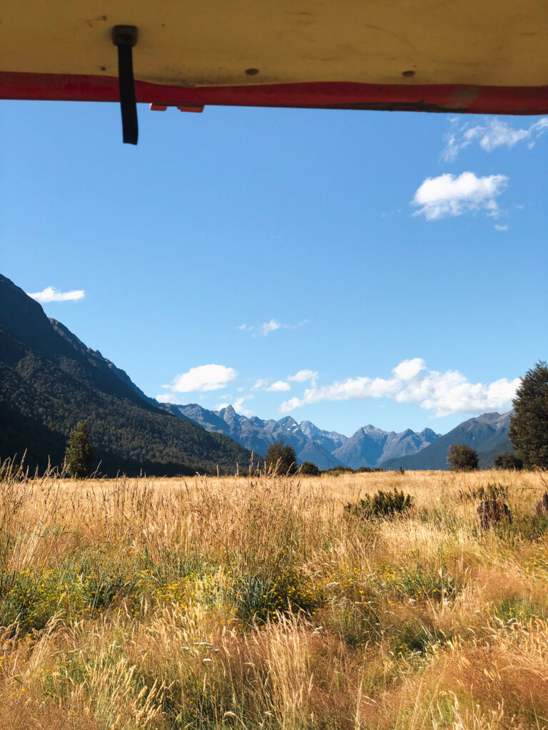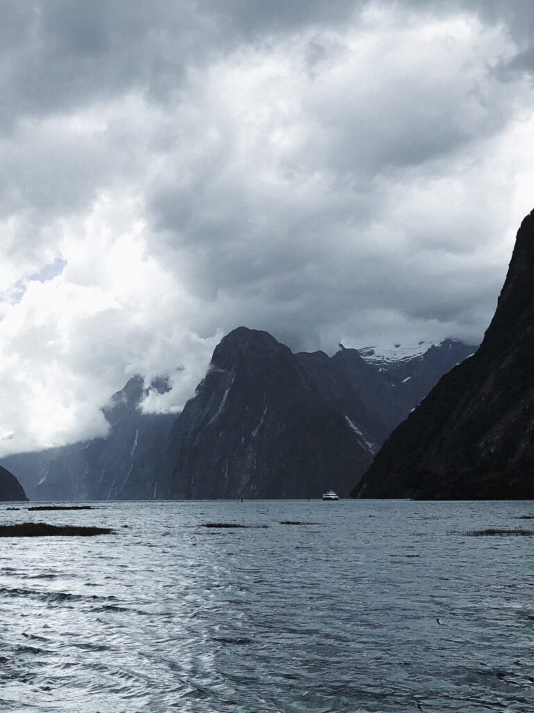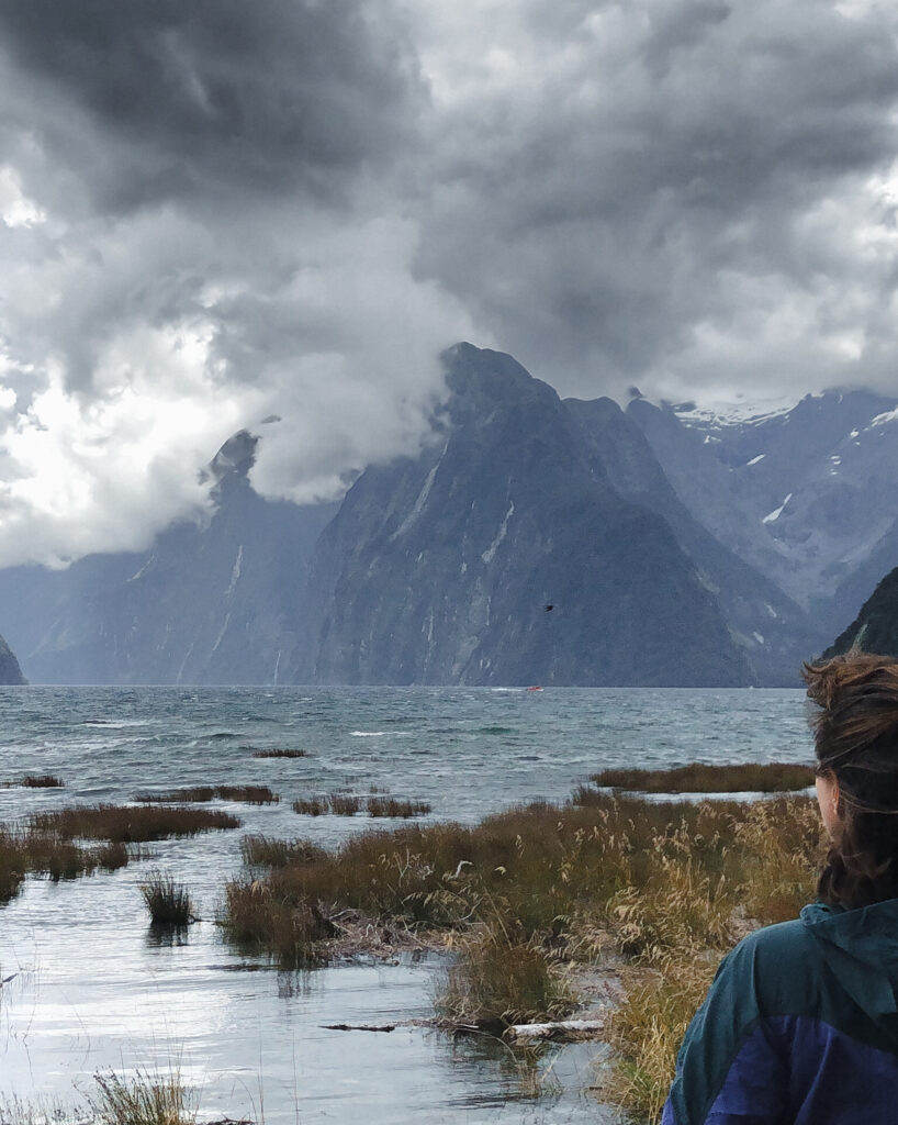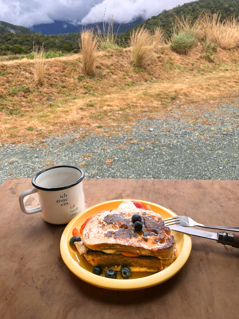 Ich kann sagen „schon schön hier.“, Gletscher, Felsen, ein bisschen Grün und das Meer. Außerdem Touristenbusse und im 10 Minuten-Takt Flieger oder Hubschrauber, die die asiatische Busbesatzung durch die Lüfte tragen, oder Schiffe, die die Wandersleute zum Milford-Great-Walk bringen. Dort gelangt man nämlich nur per Schiff hin. Da mir die Überfahrt und die Übernachtungen auf den Hütten zu teuer sind, begnüge ich mich mit den verbleibenden Möglichkeiten, die durchaus auch beeindruckend sind. Leider prasselt momentan wieder der Regen auf das Autodach. Aber voraussichtlich nur heute, am Frenchtoast-Friday, dem zweiten Tag in Folge, an dem ich die Füße stillhalten muss. Und auch nur, um dann morgen wieder mit voller Kraft die angrenzende Region an mein gewünschtes Herrschaftsgebiet („Frauschaftsgebiet“ macht ja gar keinen Sinn, „Damenschaft“ auch nicht. ) zu erkunden.