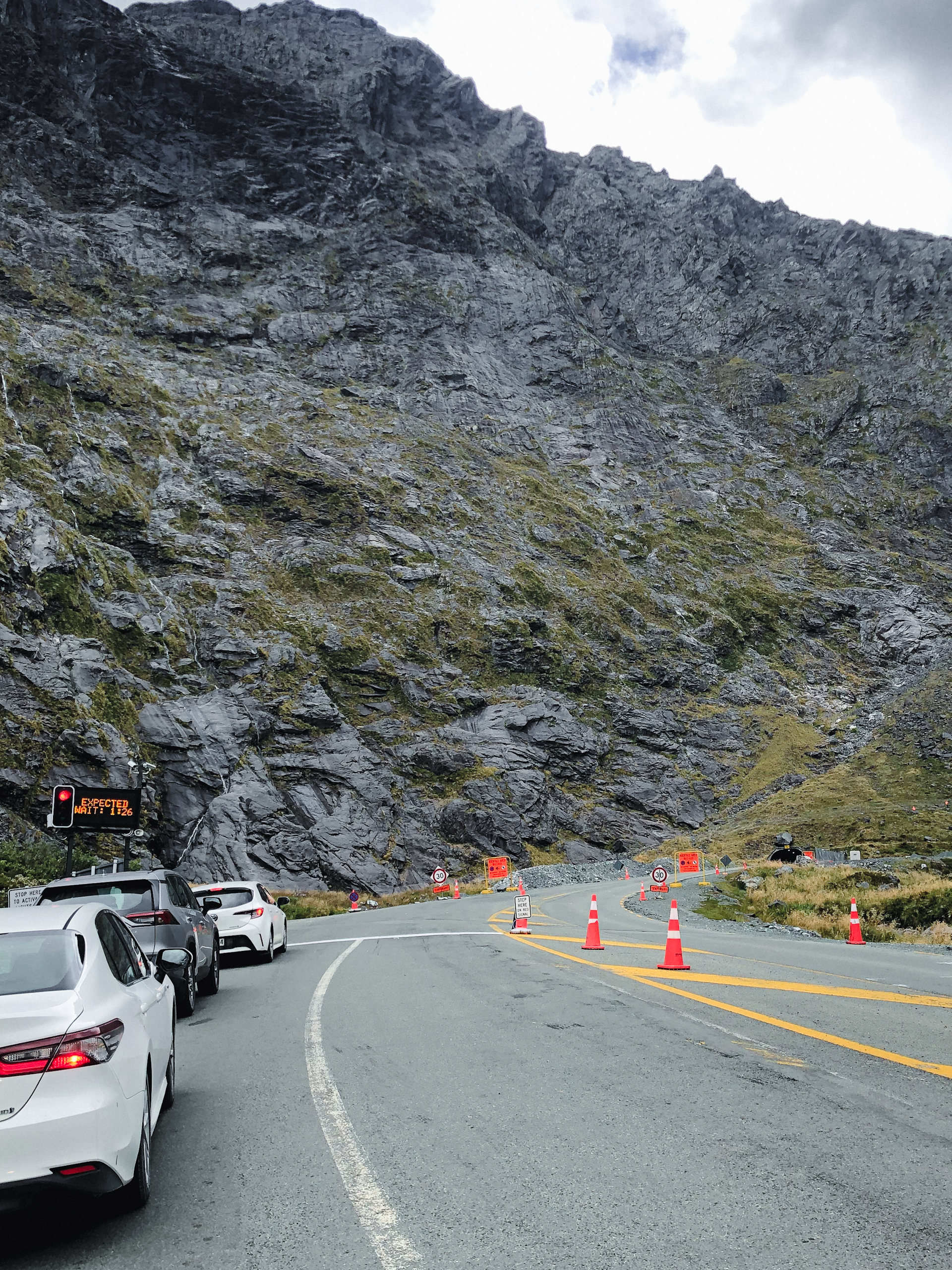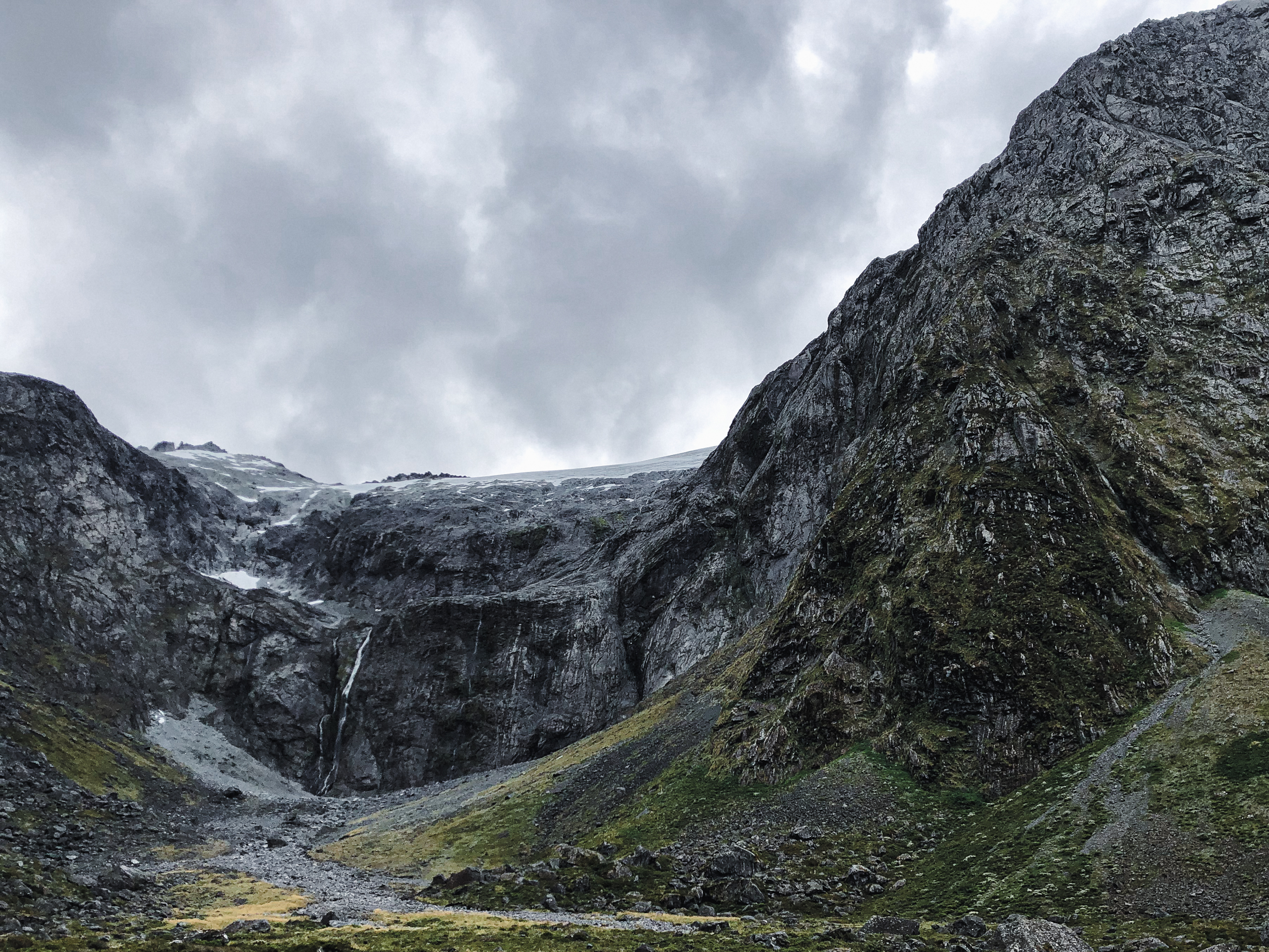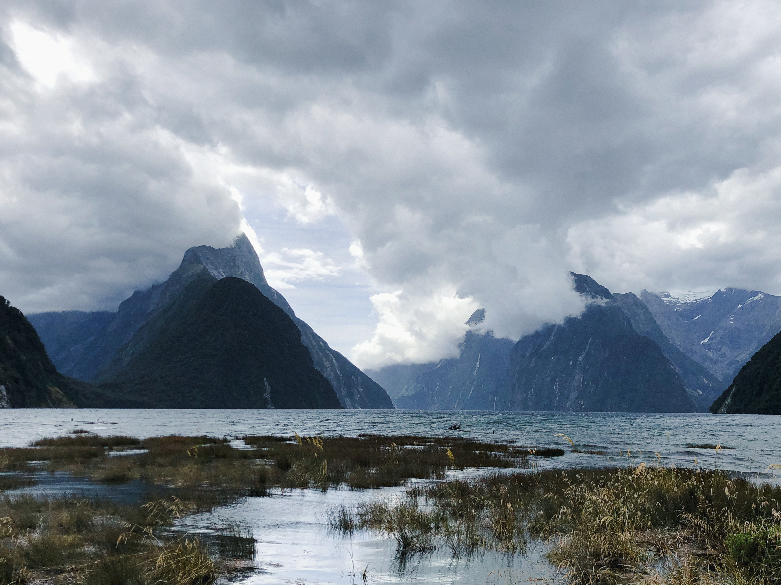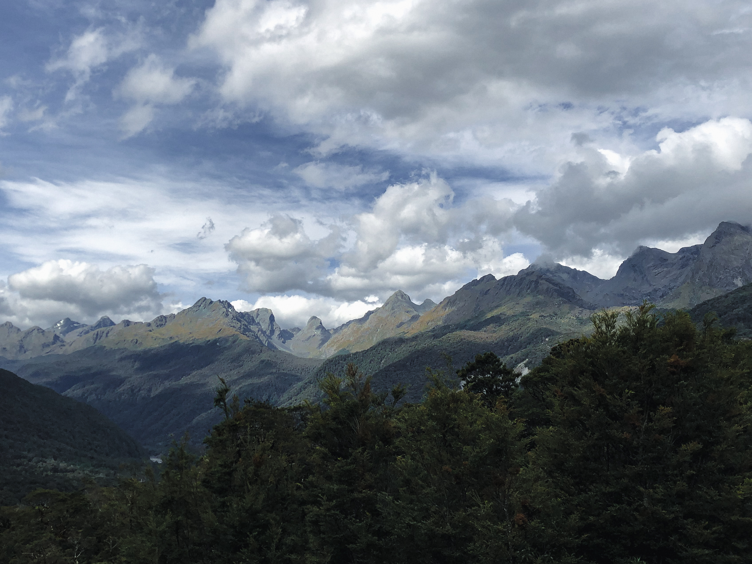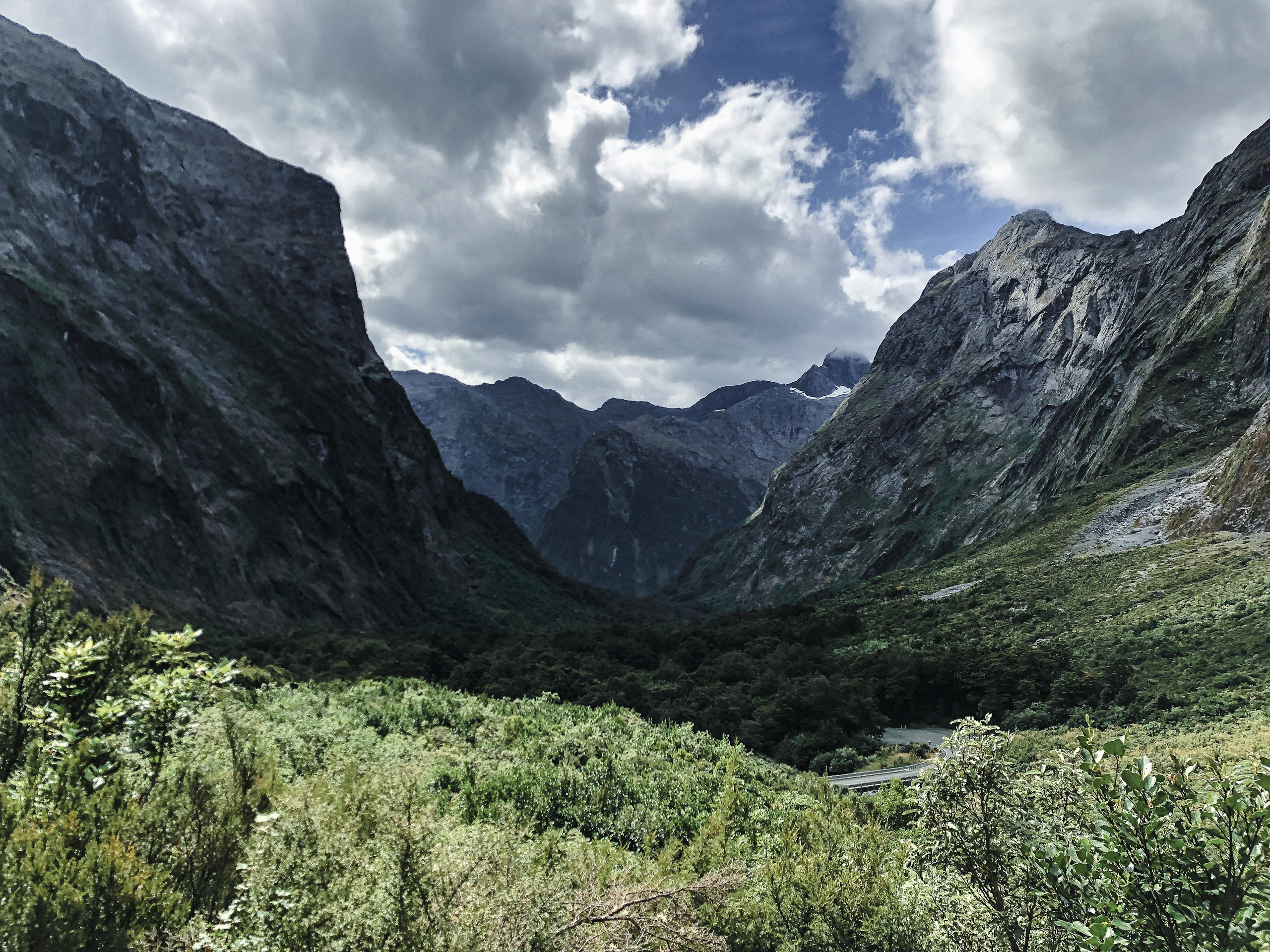 Ich kann sagen „schon schön hier.“, Gletscher, Felsen, ein bisschen Grün und das Meer. Außerdem Touristenbusse und im 10 Minuten-Takt Flieger oder Hubschrauber, die die asiatische Busbesatzung durch die Lüfte tragen, oder Schiffe, die die Wandersleute zum Milford-Great-Walk bringen. Dort gelangt man nämlich nur per Schiff hin. Da mir die Überfahrt und die Übernachtungen auf den Hütten zu teuer sind, begnüge ich mich mit den verbleibenden Möglichkeiten, die durchaus auch beeindruckend sind. Leider prasselt momentan wieder der Regen auf das Autodach. Aber voraussichtlich nur heute, am Frenchtoast-Friday, dem zweiten Tag in Folge, an dem ich die Füße stillhalten muss. Und auch nur, um dann morgen wieder mit voller Kraft die angrenzende Region an mein gewünschtes Herrschaftsgebiet („Frauschaftsgebiet“ macht ja gar keinen Sinn, „Damenschaft“ auch nicht. ) zu erkunden.