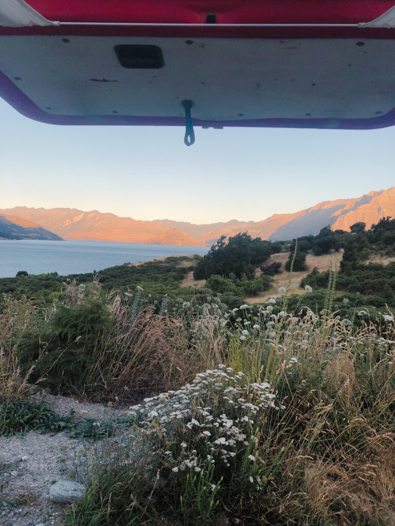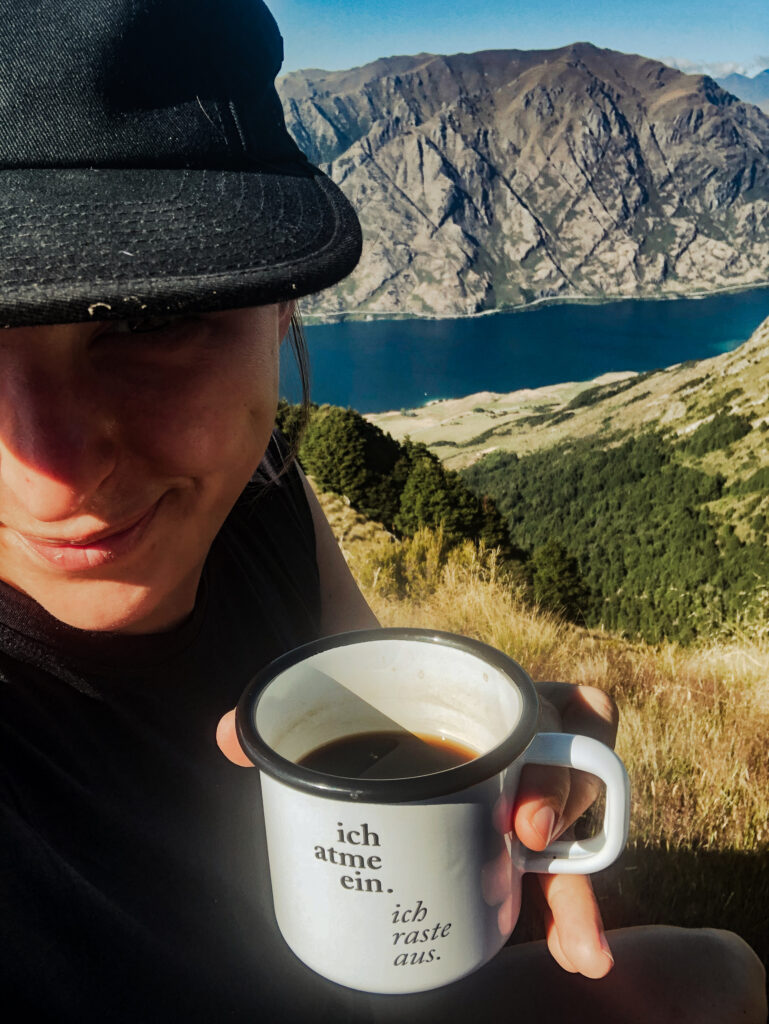Der Kampf in mir tobt. Der innere Antreiber und Entdeckergeist würde jetzt gerne diesen Berg hier, direkt hinter mir, gleich hinter meinem famosen Schlafplatz mit Blick auf Berge und See, hinaufgehen, nur um das alles dann von oben nochmal aus einer anderen Perspektive zu sehen.
