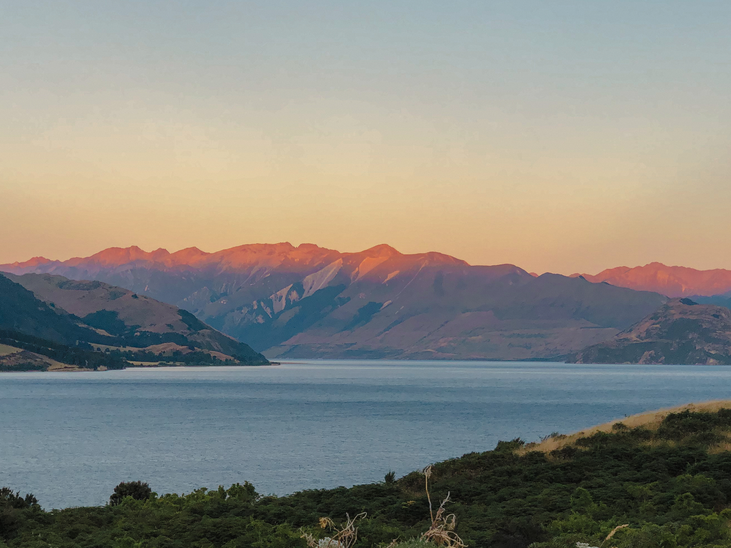 Der Kampf in mir tobt. Der innere Antreiber und Entdeckergeist würde jetzt gerne diesen Berg hier, direkt hinter mir, gleich hinter meinem famosen Schlafplatz mit Blick auf Berge und See, hinaufgehen, nur um das alles dann von oben nochmal aus einer anderen Perspektive zu sehen.