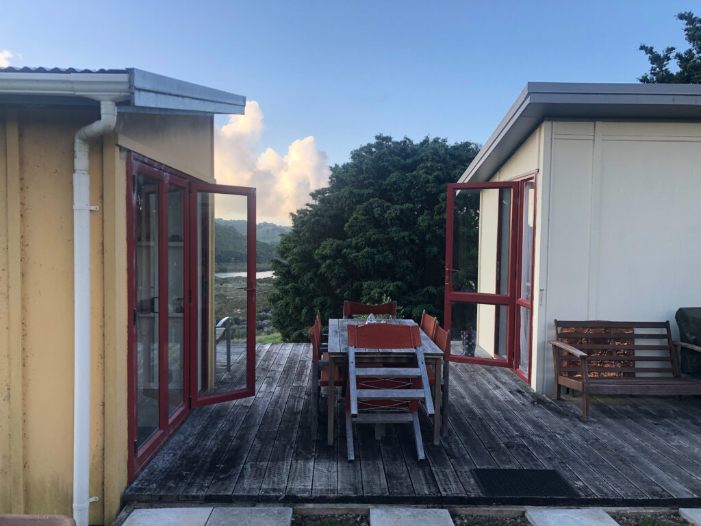 Ben und Robyn wohnen in einer Garage an der „Eingangsseite“ des Grundstücks. Der Zustand erinnert ein wenig an Dauercamping oder ein etabliertes Provisorium. Es fehlt an nichts und trotzdem sind die Standards und die Prioritäten ein wenig anders gesetzt als es die europäische Normierung vorsehen würde. Immerhin, seit diesem Jahr gibt es Strom und somit einen Kühlschrank und zuverlässiges Internet. Auf der anderen Seite des Hügels, mit Blick auf die Meeresarme und grünen Hügel befindet sich dann meine derzeitige Unterkunft. Es ist eigentlich die Sommerresidenz von Ben‘s Eltern, die mich netterweise für die erste Woche hier wohnen lassen. Hier ist es schon nicht mehr wirklich Camping, mehr Glamping, einfach und luxuriös. Alles ein bisschen weniger provisorisch und mit einer wundervollen Aussicht.