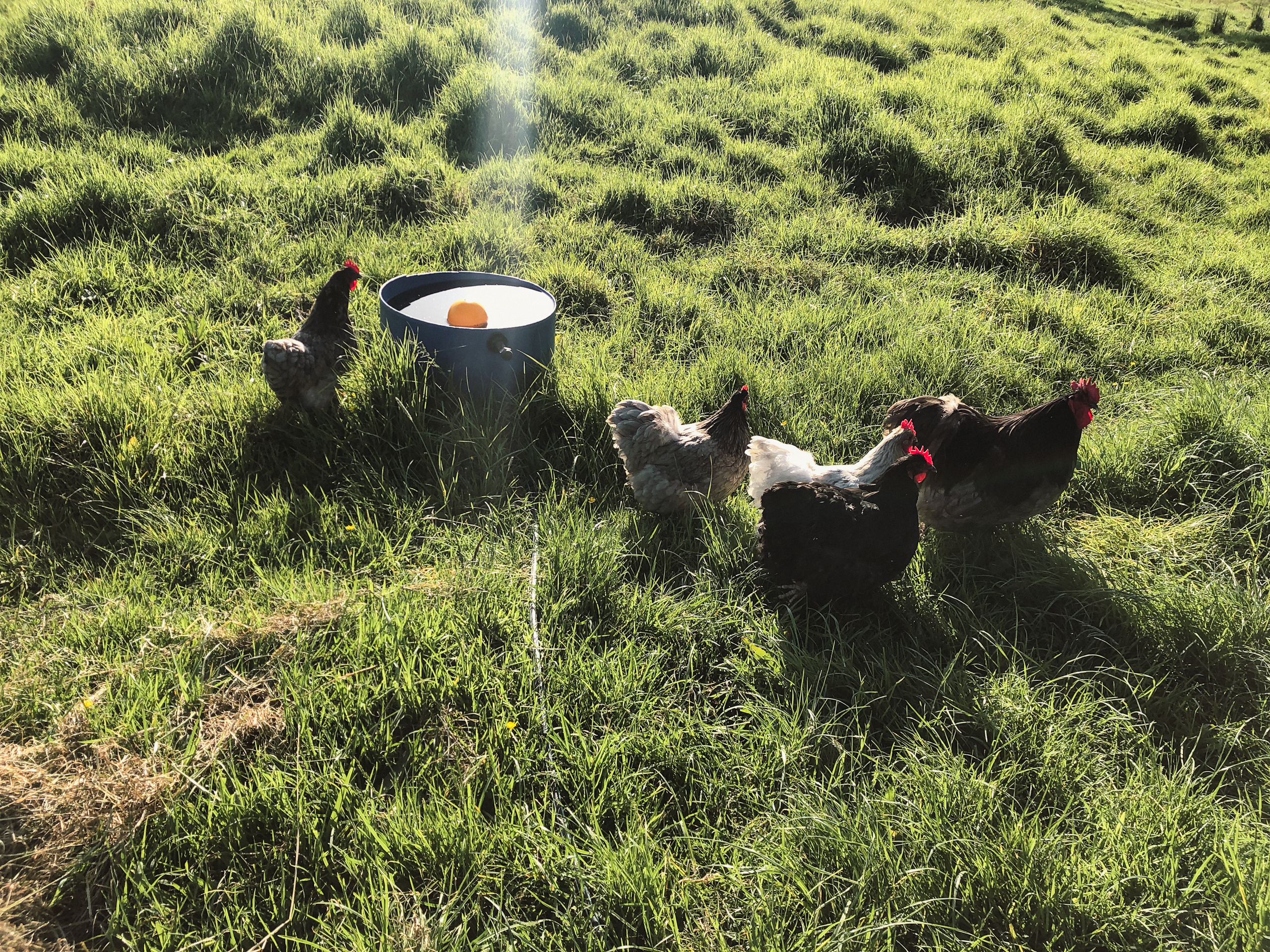 Der Weg zu den beiden auf der anderen Seite des Hügels, führt vorbei an den Tieren und dem Garten. Sechs Schafe, zwei Kühe, sechs prächtige Hühner, viele mittelprächtige Hühner, zwei Schweine.  Abends nachdem Ben gekocht hat (Ich denke niemand sonst sollte hier kochen, er macht das schon sehr gut) gehe ich über den Hügel zurück zum kleinen Schloss und kann dank neuster Technologien meine Serie zum Einschlafen anschauen.  Es fühlt sich gut an hier zu sein, es ist wie eine Mischung aus „nach Hause kommen“, Camping und Ferien auf dem Bauernhof.