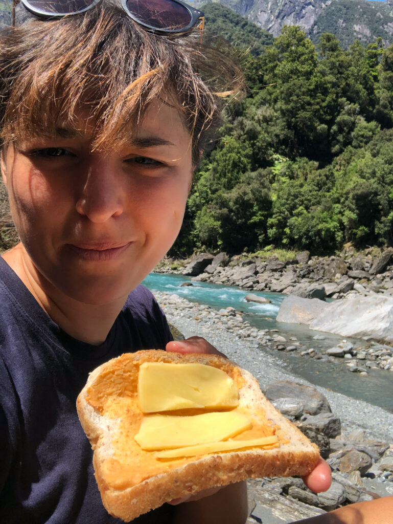 Nun ja, die Nacht auf der Hütte war angenehm und lange (nach dem Abendessen bin ich direkt um 20 Uhr ins Bett) und es hätte auch Hot Pools zur Entspannung gegeben, aber ich bin lieber in den kalten Fluss zum baden. Also der Rückweg war schon erträglicher, da er trotz weniger Höhenmeter immerhin stetig bergab ging und ich wusste, das Ganze findet ein Ende.