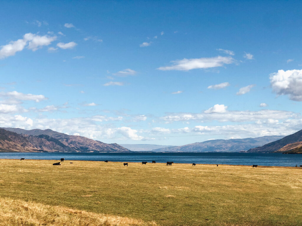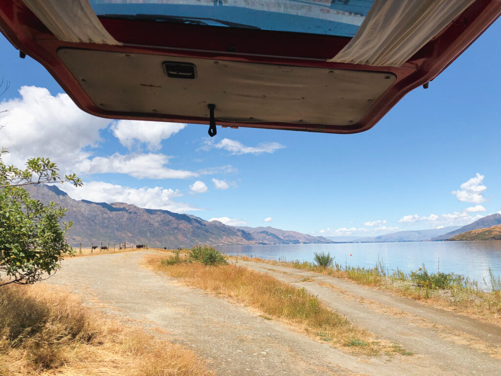 Also nun werde ich mich bei der nächsten Wanderung wohl besser über die Chancen auf Bergsicht informieren. Gut war es trotzdem, einfach weil ich es geschafft habe und meine Hüfte mitlief wie frisch geschmiert. Dennoch mach ich heute, am Tag danach lieber eine Pause, auch wenn es mir schwer fällt, hier am Lake Hawea zu sitzen und all die wunderschönen Berge um mich zu sehen und nicht zu wissen wie das alles hier nun von oben aussieht. Und noch dazu ist das Wetter wundervoll. Aber ich begnüge mich heute mit einem Bad im See und fülle meine Campingdusche mal wieder um mich ein bisschen frisch zu machen, bevor ich in die Stadt gehe.